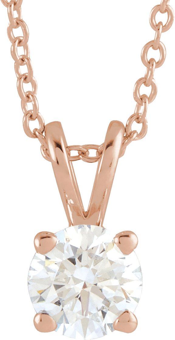 14K Rose 0.625 CT Lab Grown Diamond Solitaire 16 to 18 inch Necklace Ref 17058756
