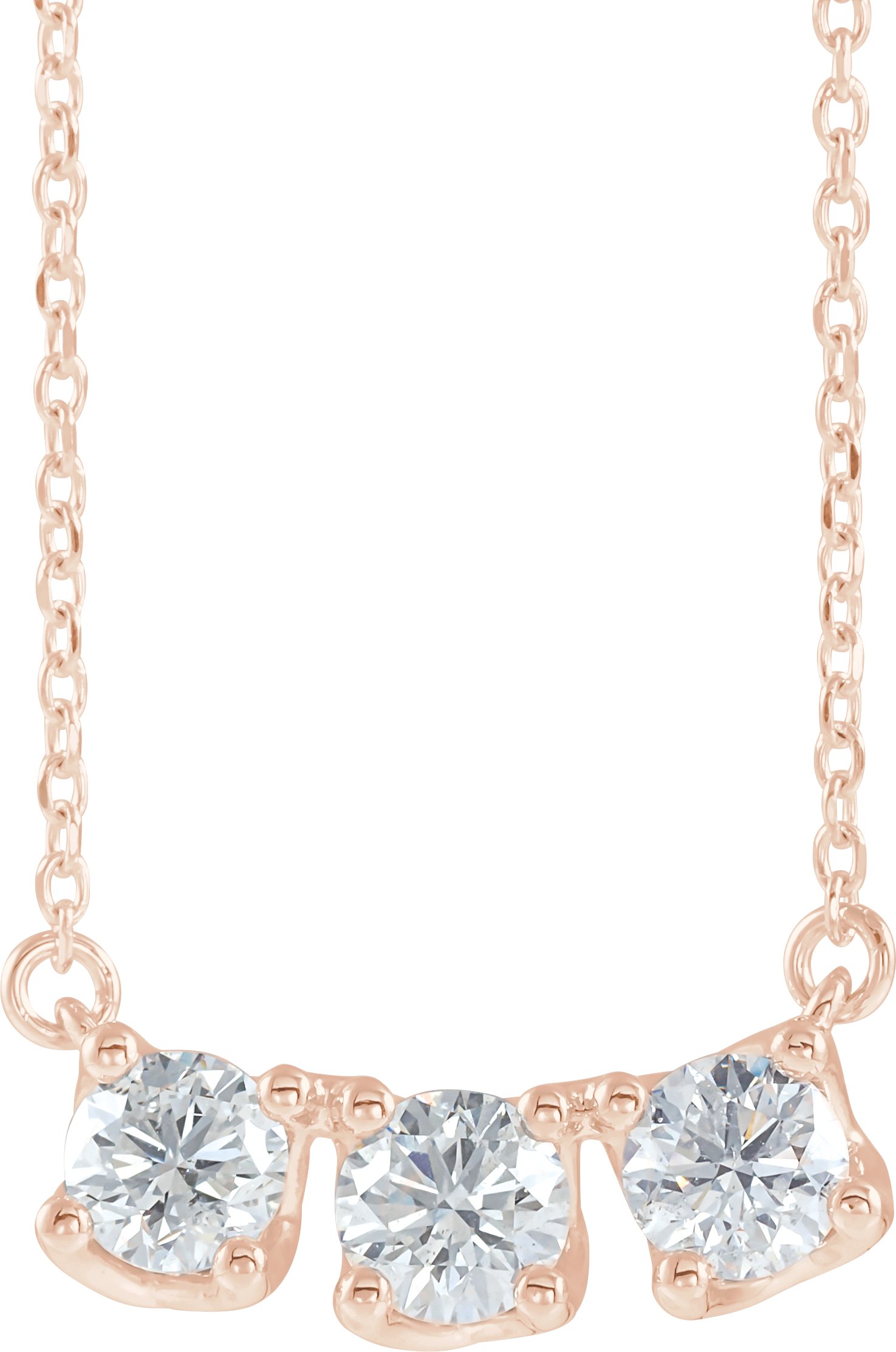 14K Rose 1 CTW Diamond Three Stone Curved Bar 18" Necklace Ref. 15022944