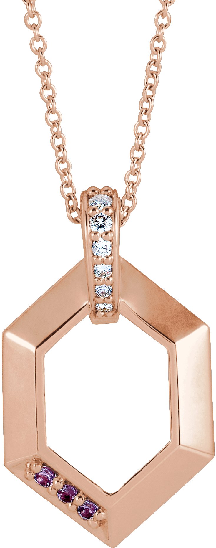 14K Rose 1 Stone Group .06 CTW Diamond Semi Set Family 16 18" Necklace Ref. 16691506
