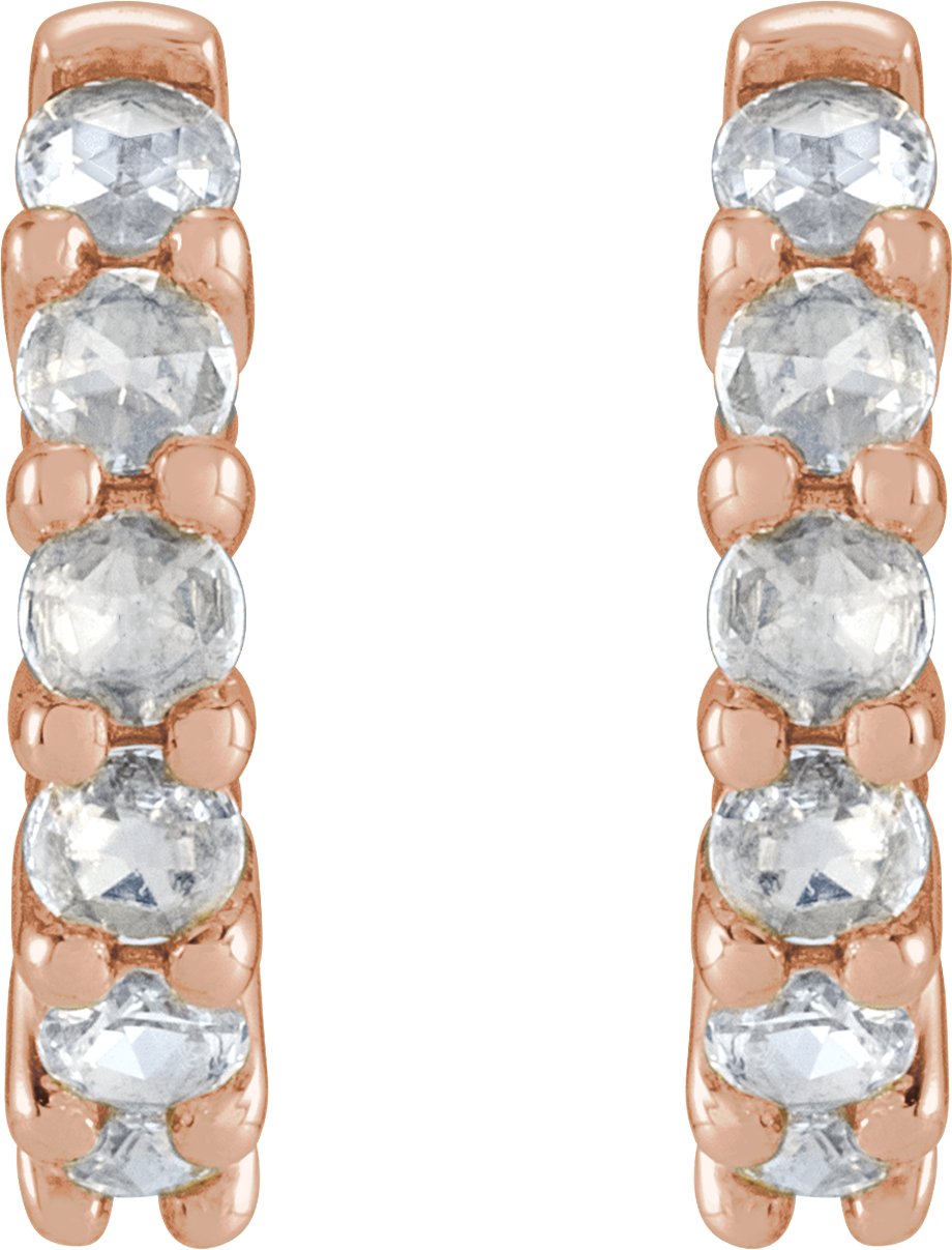 14K Rose 12.2 mm 0.20 CTW Rose Cut Natural Diamond Huggie Hoop Earrings Ref 20030819
