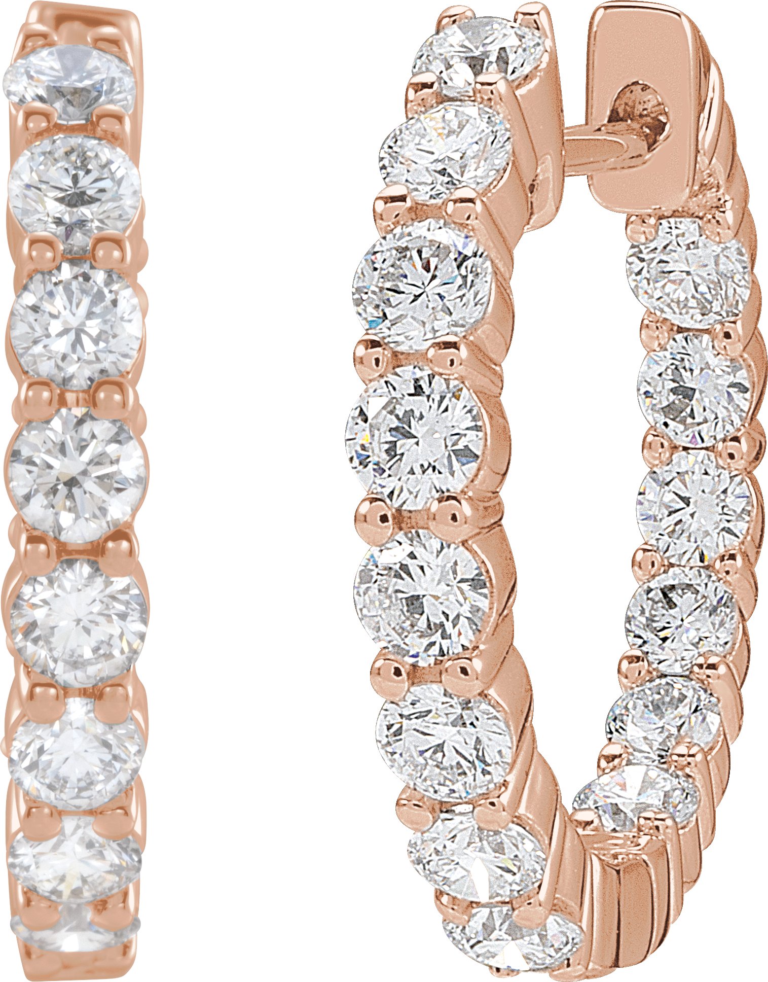 14K Rose 2 CTW Lab Grown Diamond Inside Outside Hinged 20 mm Hoop Earrings