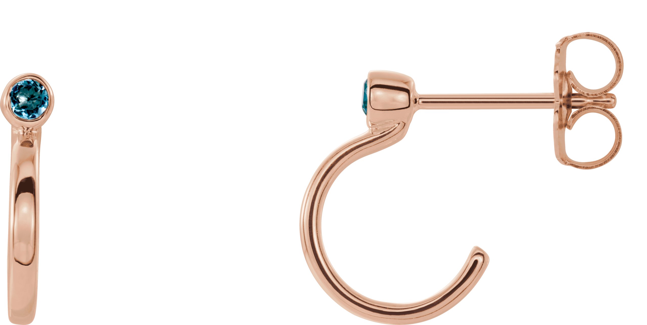 14K Rose 2 mm Round Aquamarine Bezel Set Hoop Earrings