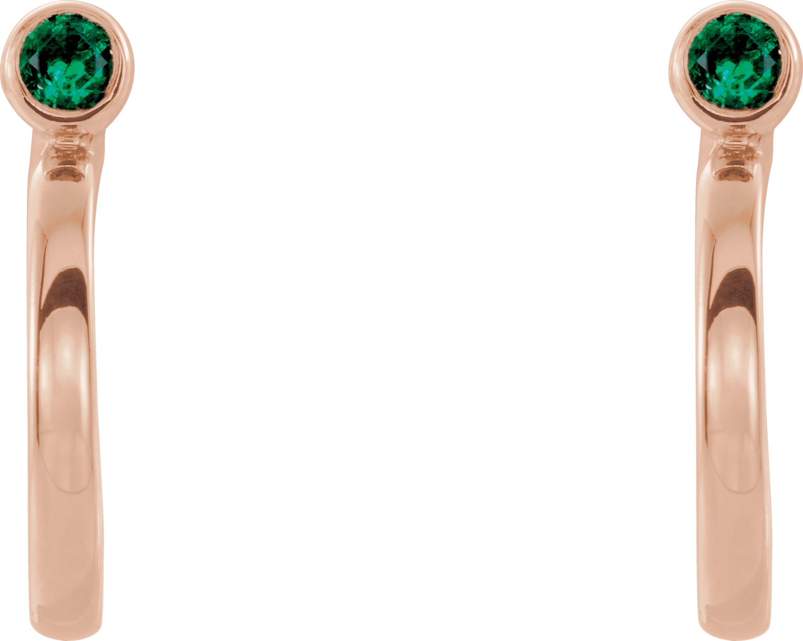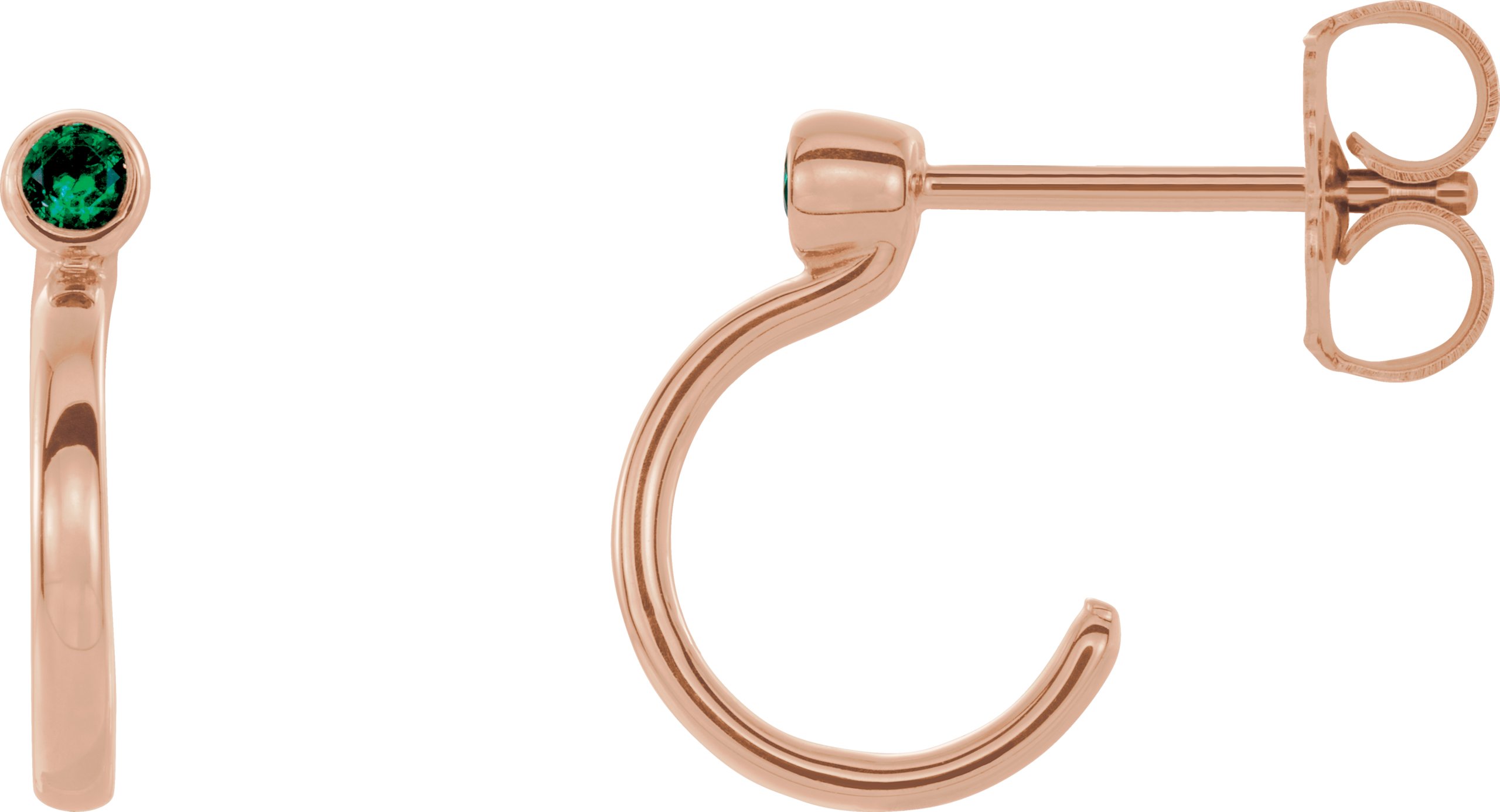 14K Rose 2 mm Round Emerald Bezel Set Hoop Earrings