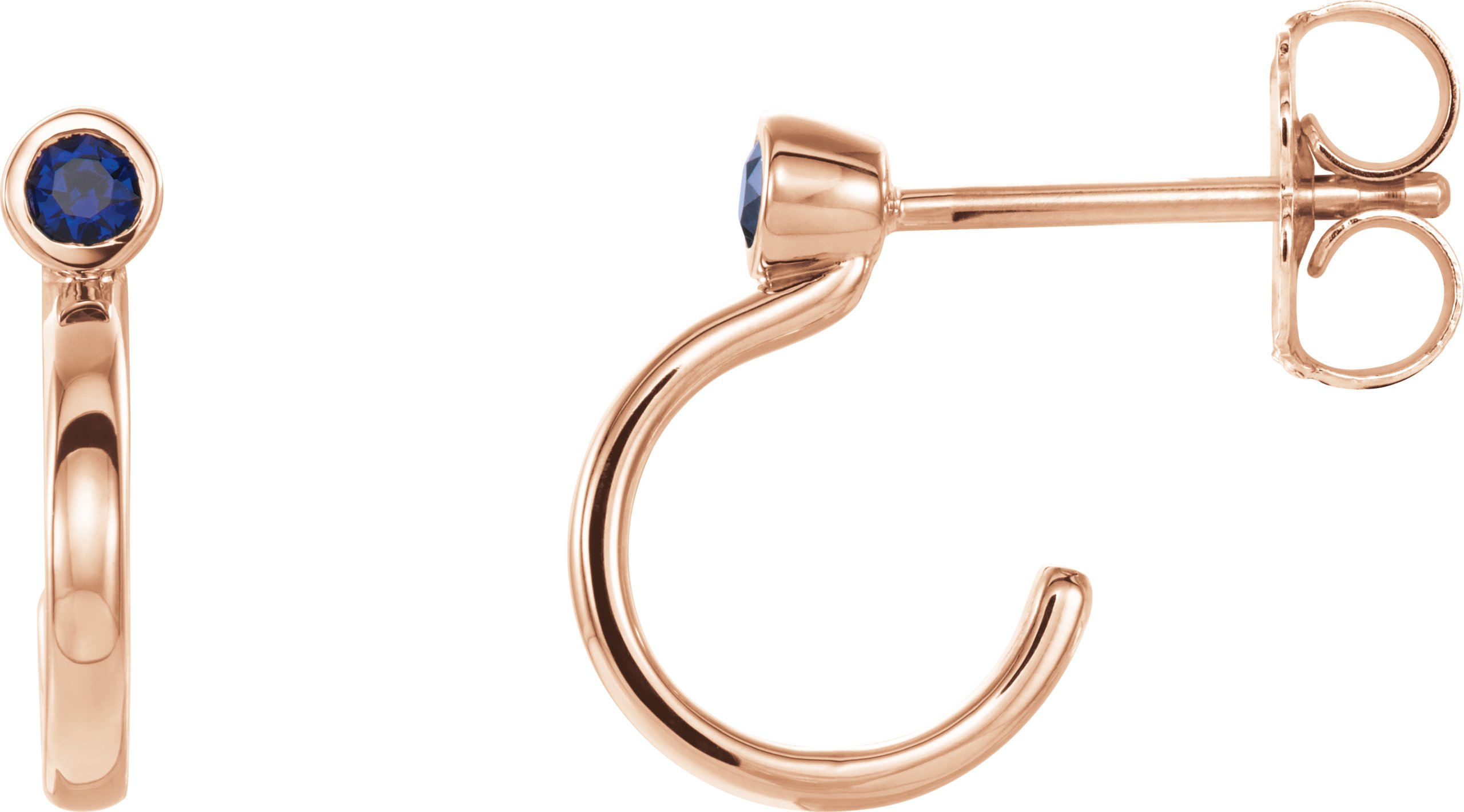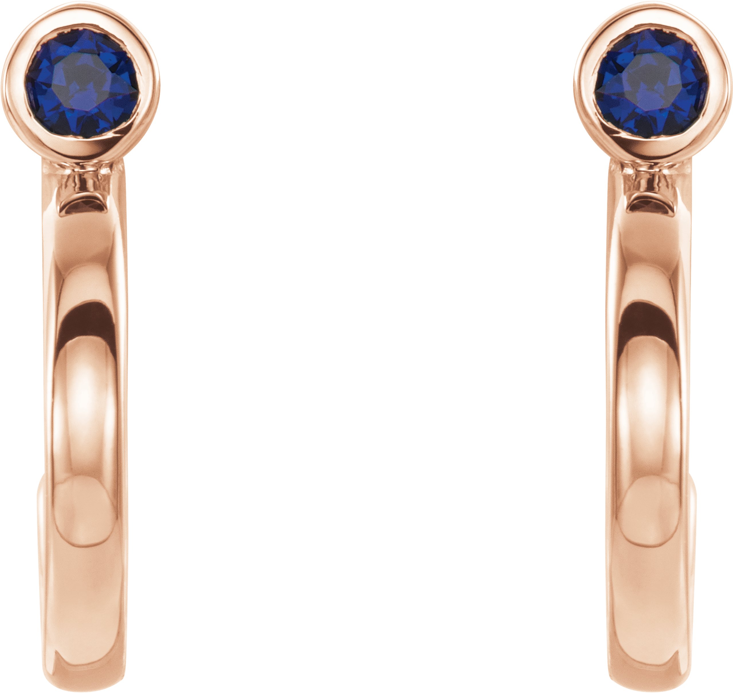 14K Rose 2.5 mm Round Chatham Lab Created Blue Sapphire Bezel Set Hoop Earrings