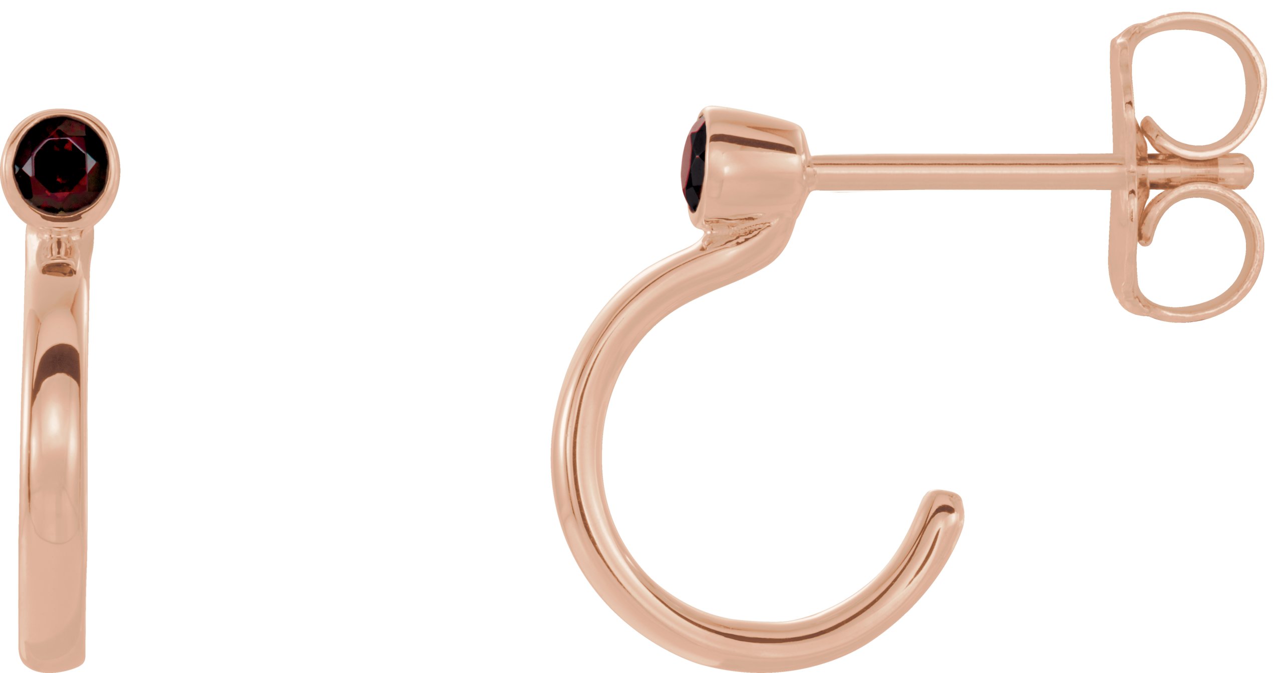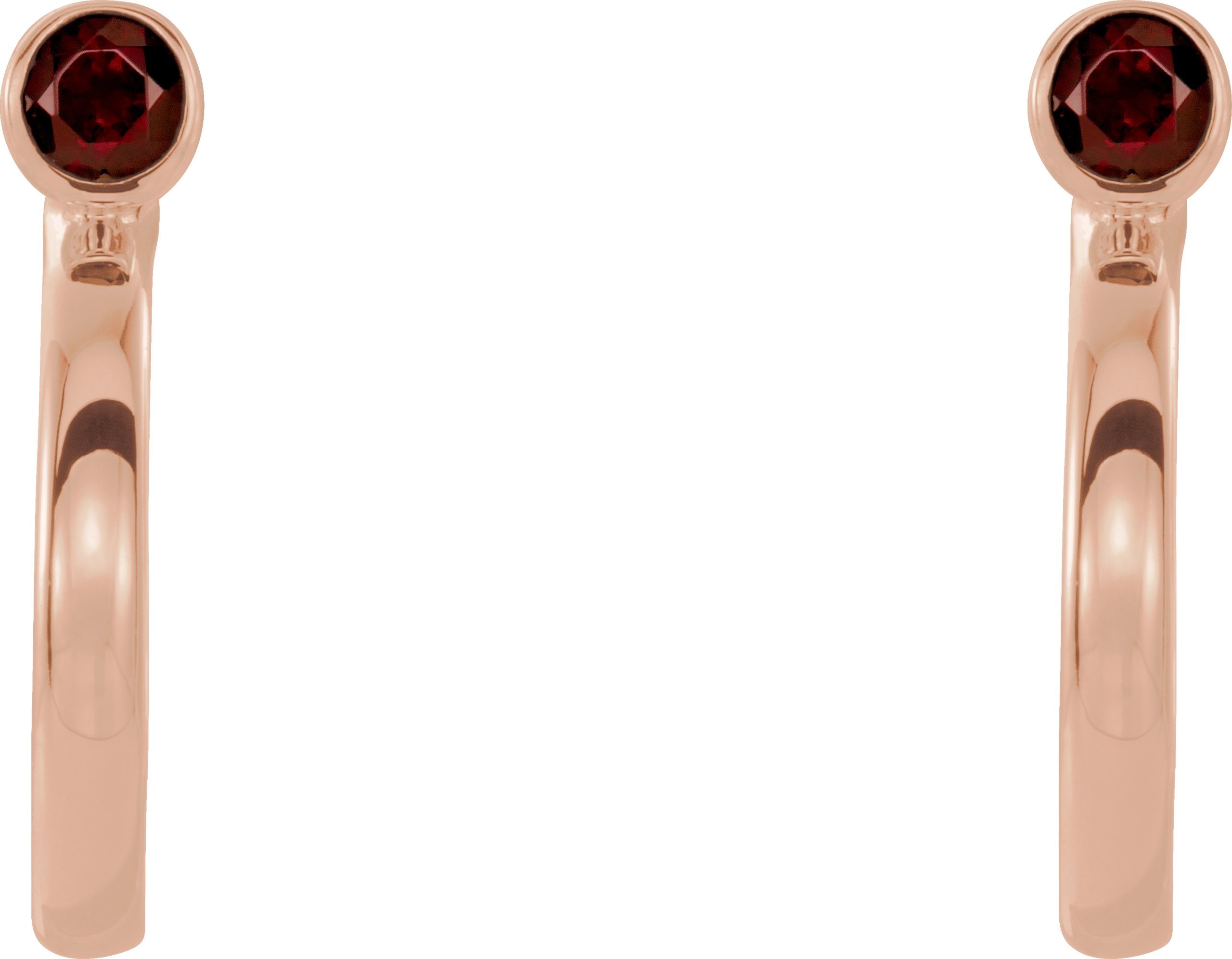 14K Rose 2.5 mm Round Mozambique Garnet Bezel Set Hoop Earrings