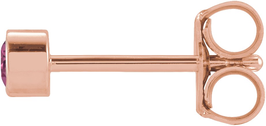 14K Rose 2.5 mm Round Pink Tourmaline Micro Bezel-Set Single Earring