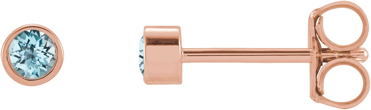 14K Rose 2.5 mm Round Sky Blue Topaz Micro Bezel-Set Earrings
