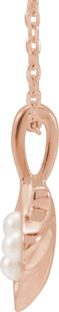 14K Rose 3-Stone Cultured White Seed Pearl Family Shell 16-18" Necklace