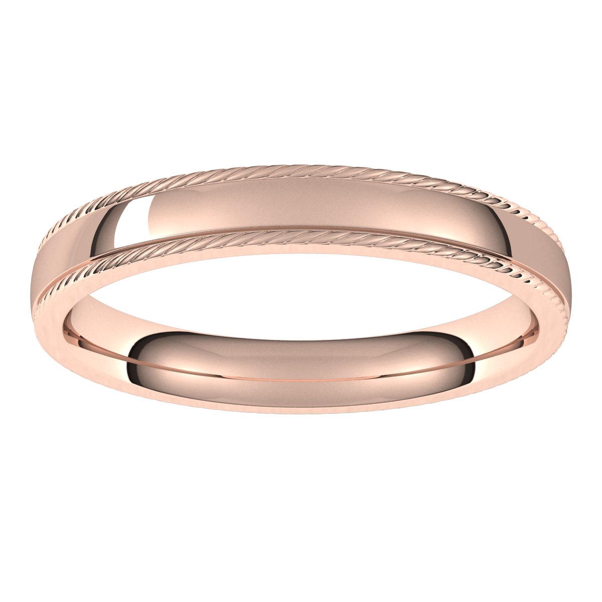 14K Rose 3 mm Rope Half Round Comfort Fit Band Size 15.5