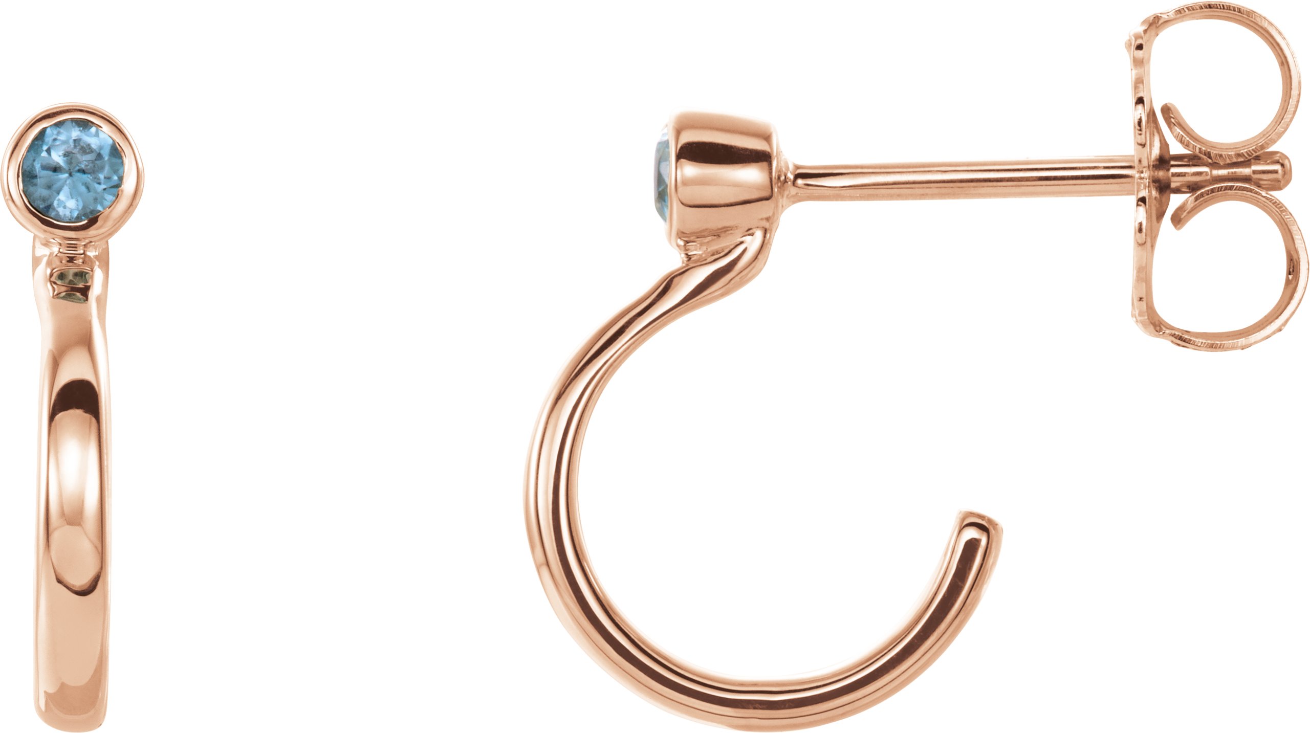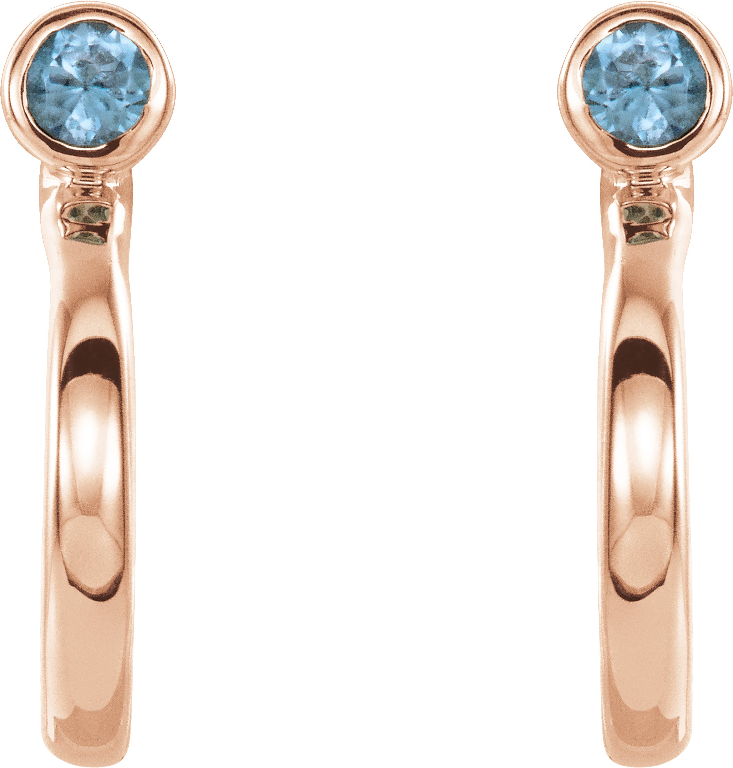 14K Rose 3 mm Round Blue Zircon Bezel Set Hoop Earrings