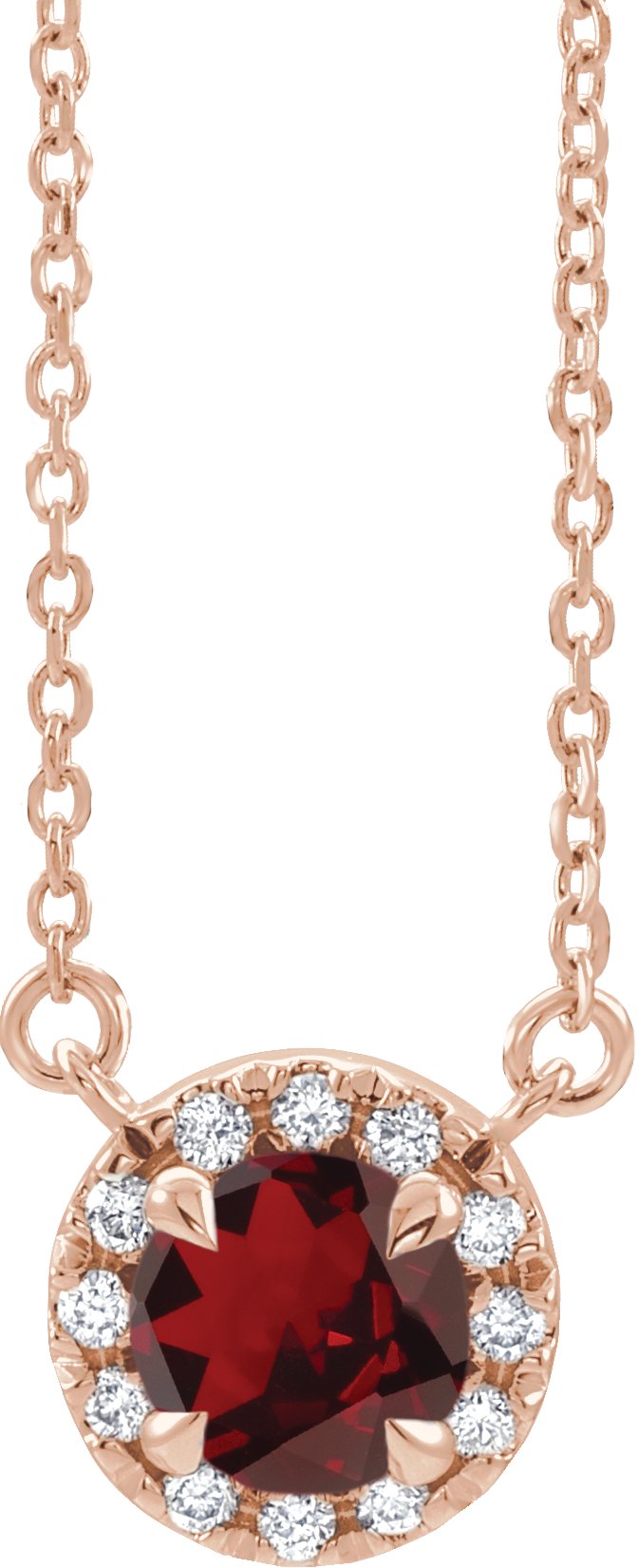 14K Rose 3 mm Round Mozambique Garnet & .03 CTW Diamond 16 inch Necklace