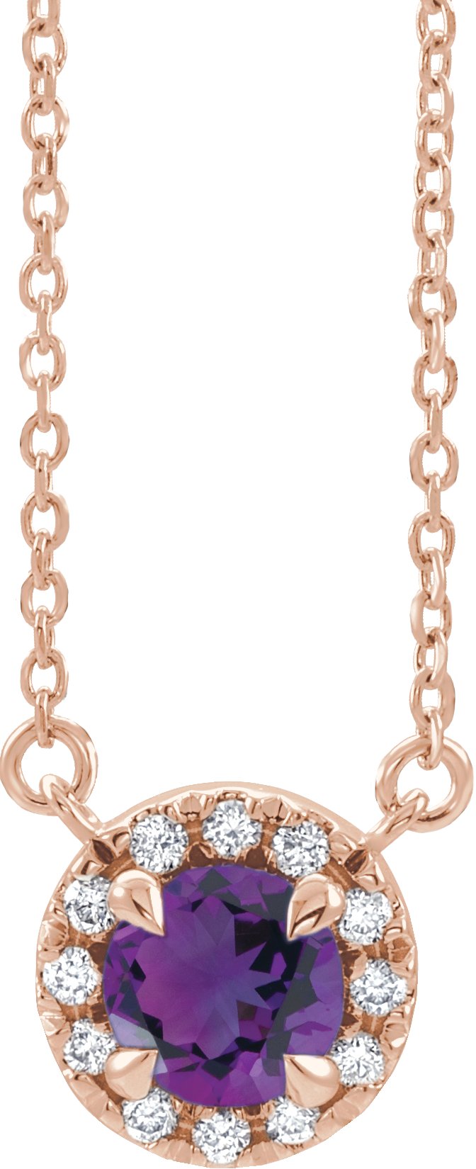 14K Rose 3.5 mm Round Amethyst & .04 CTW Diamond 16 inch Necklace
