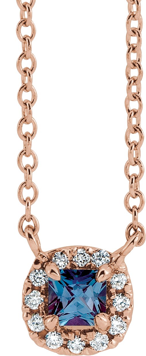 14K Rose 3.5x3.5 mm Square Chatham Lab Created Alexandrite & .05 CTW Diamond 16 inch Necklace