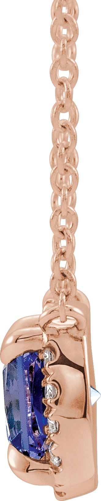 14K Rose 3.5x3.5 mm Square Chatham Lab Created Blue Sapphire & .05 CTW Diamond 16 inch Necklace