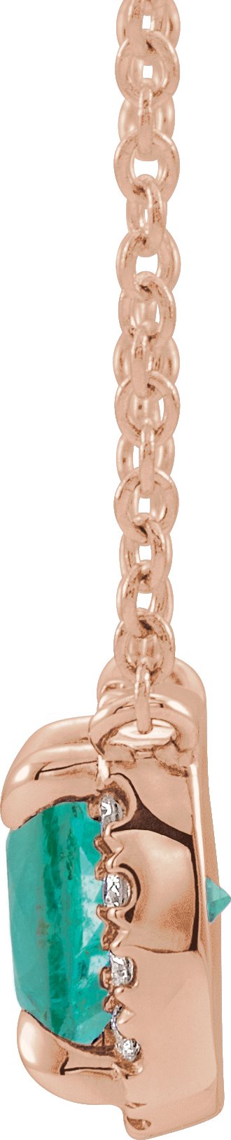 14K Rose 3.5x3.5 mm Square Chatham Lab Created Emerald & .05 CTW Diamond 16 inch Necklace