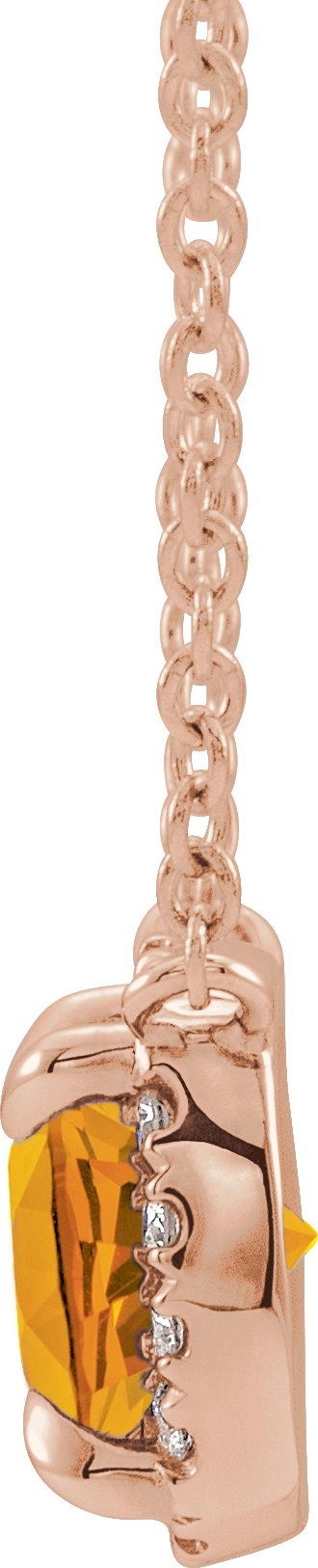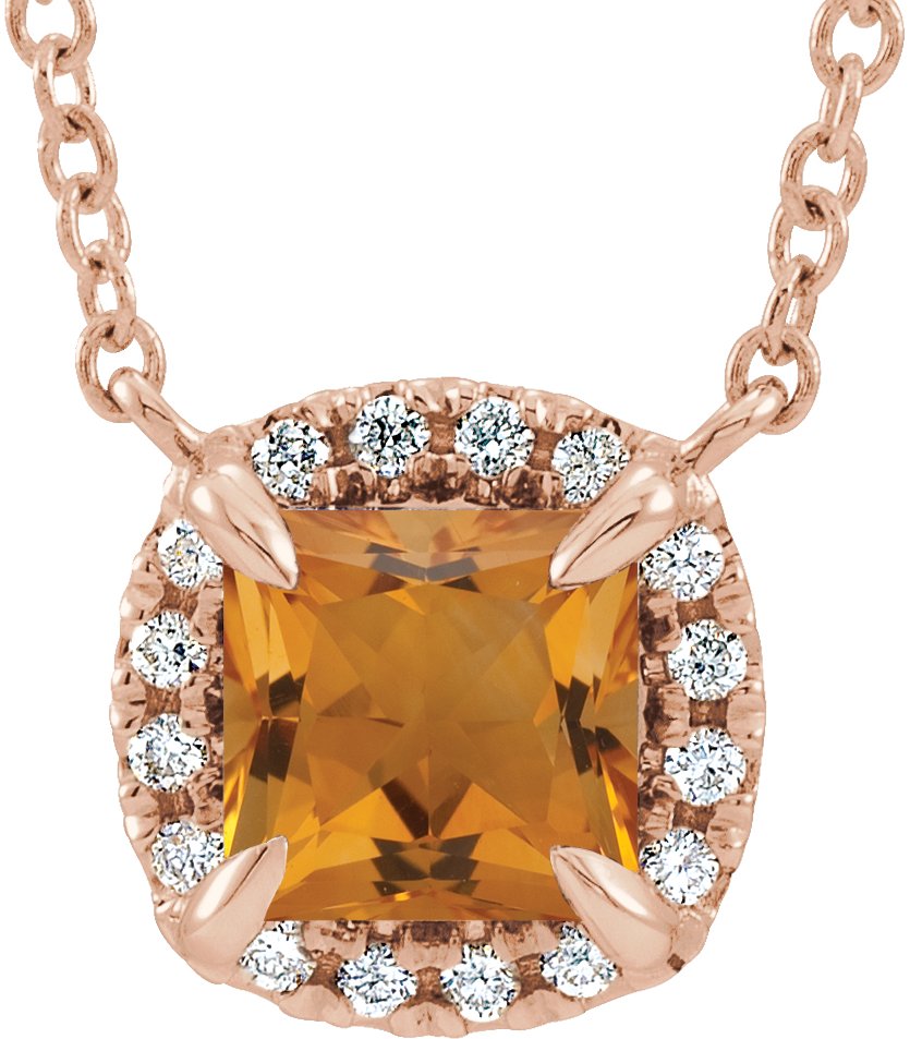14K Rose 3.5x3.5 mm Square Citrine & .05 CTW Diamond 16 inch Necklace