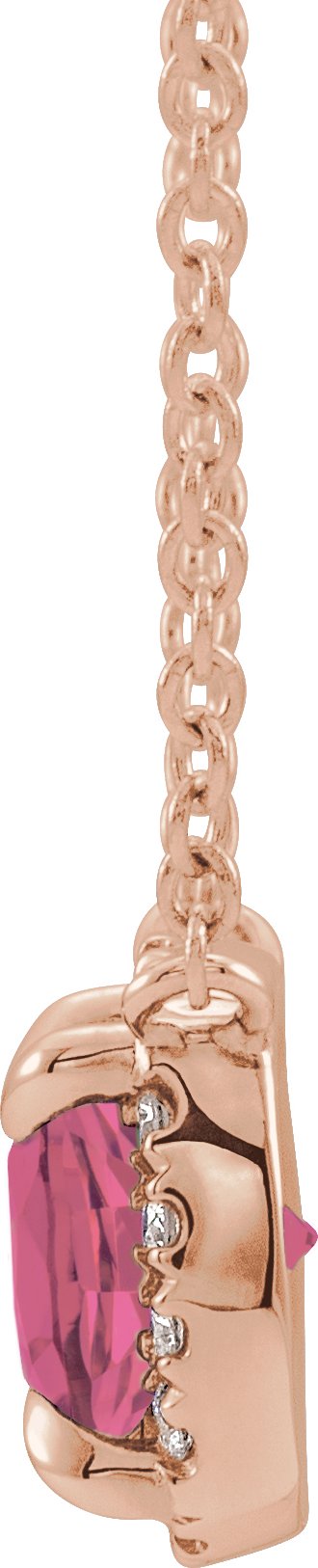 14K Rose 3.5x3.5 mm Square Pink Tourmaline & .05 CTW Diamond 18 inch Necklace