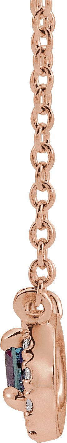 14K Rose 3x3 mm Square Chatham Lab Created Alexandrite & .05 CTW Diamond 16 inch Necklace