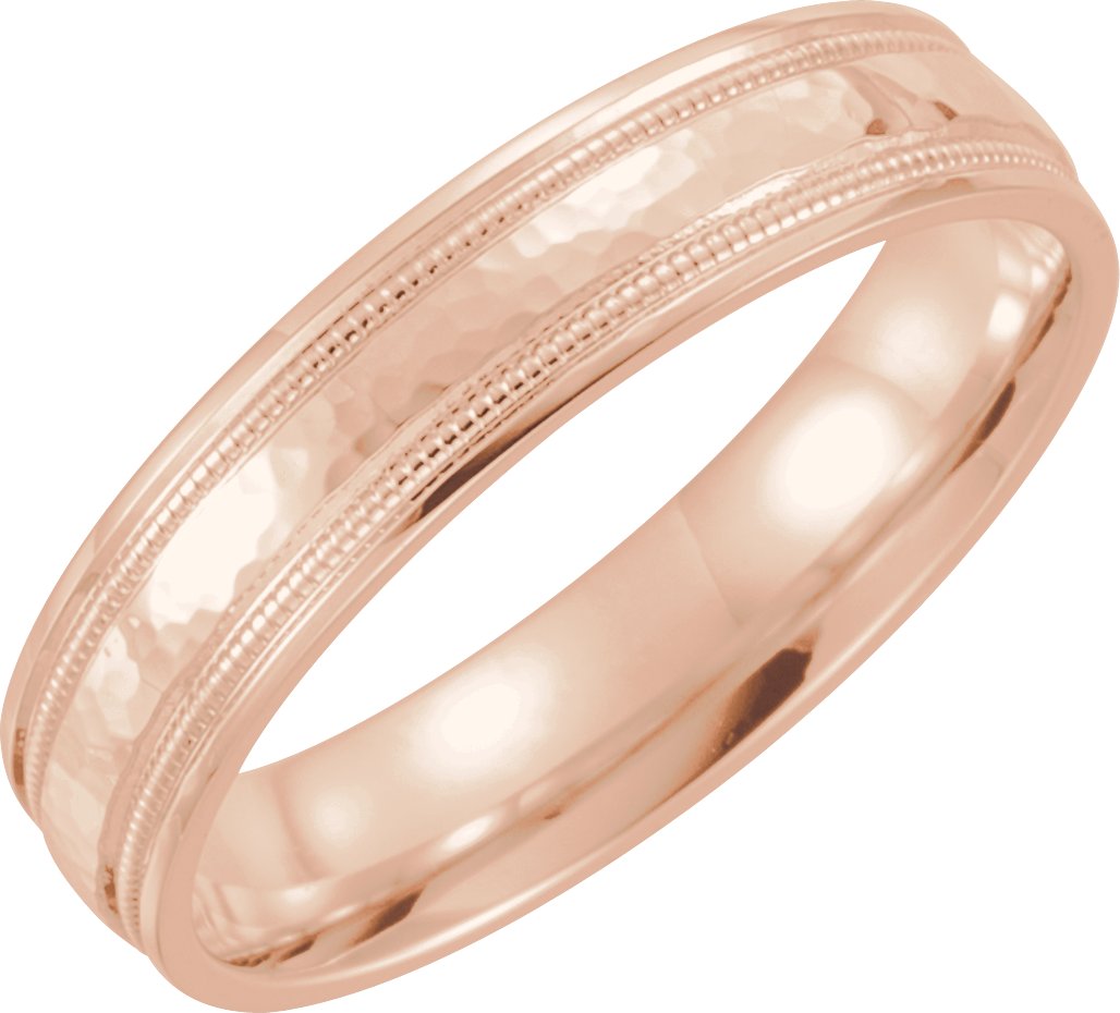 14K Rose 4 mm Flat Edge Band with Hammer Finish and Milgrain Size 12 Ref 13148126