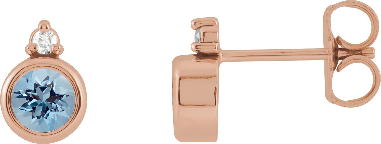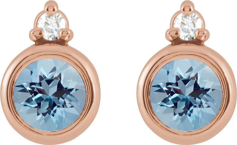 14K Rose 4 mm Natural Aquamarine & .03 CTW Natural Diamond Earrings
