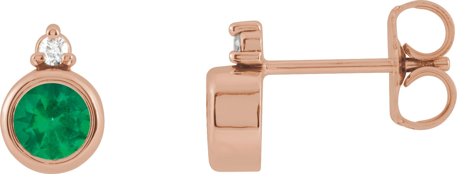 14K Rose 4 mm Natural Emerald & .03 CTW Natural Diamond Earrings