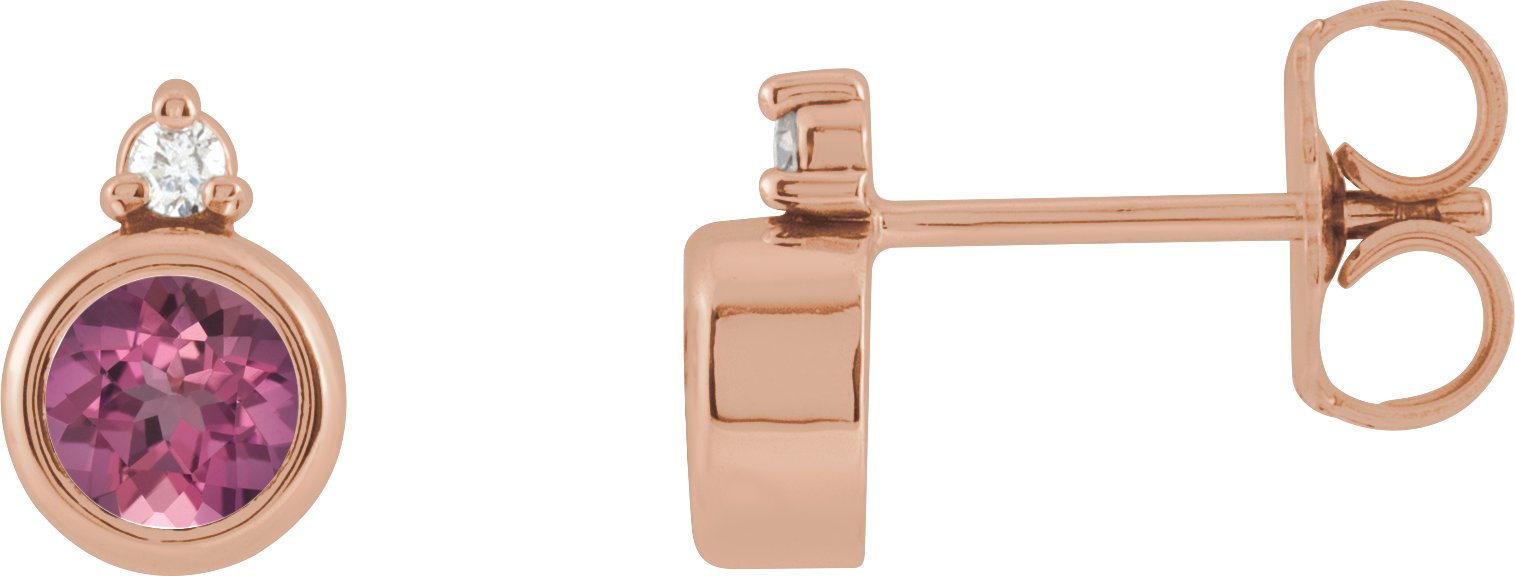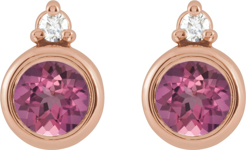 14K Rose 4 mm Natural Pink Tourmaline & .03 CTW Natural Diamond Earrings