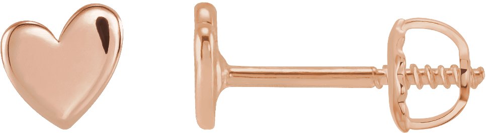 14K Rose 4 mm Right Asymmetrical Heart Threaded Post and Back Earring Ref 19658530