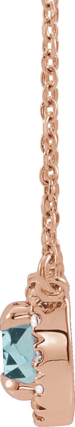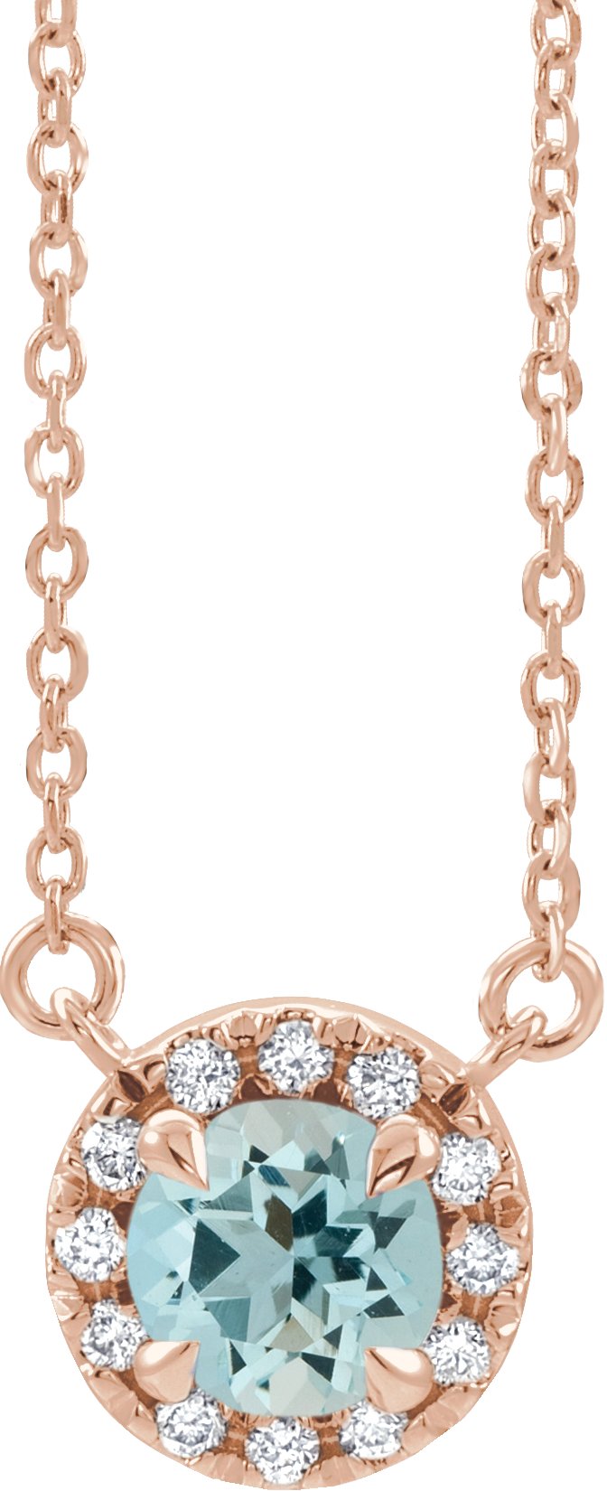 14K Rose 4 mm Round Aquamarine & .06 CTW Diamond 16 inch Necklace