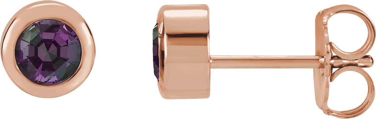 14K Rose 4 mm Round Genuine Alexandrite Birthstone Earrings