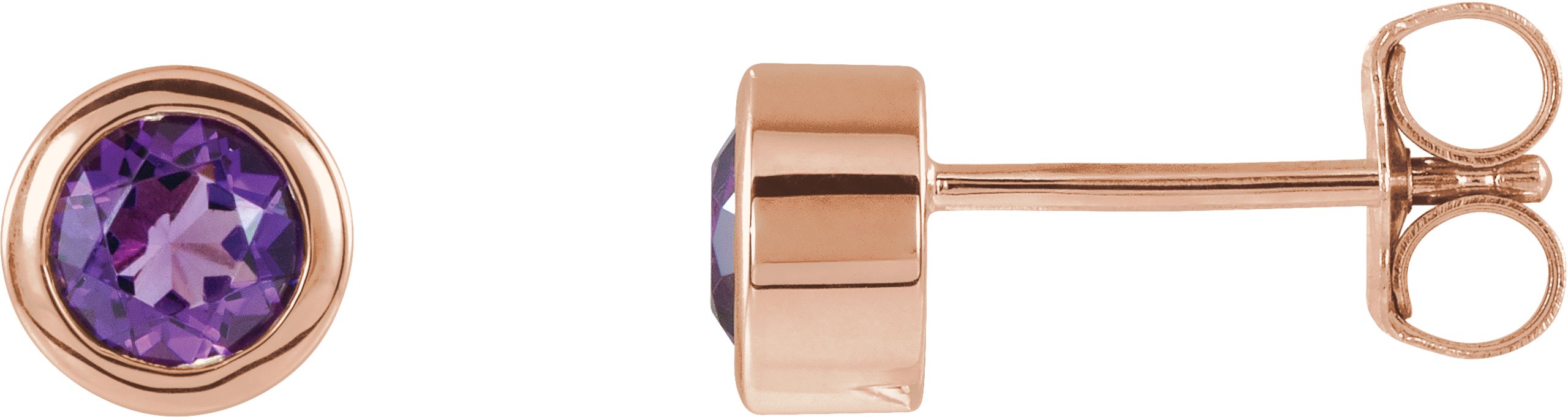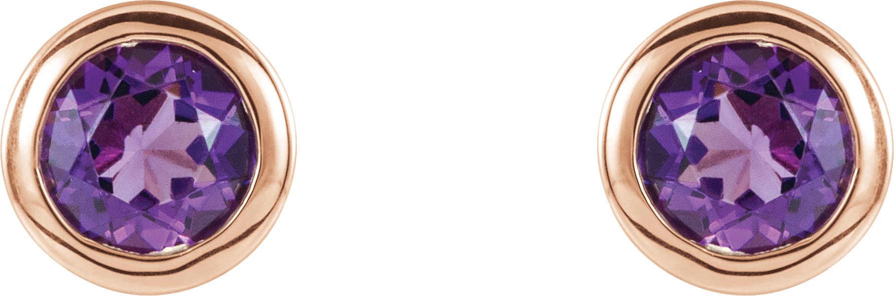 14K Rose 4 mm Round Genuine Amethyst Birthstone Earrings