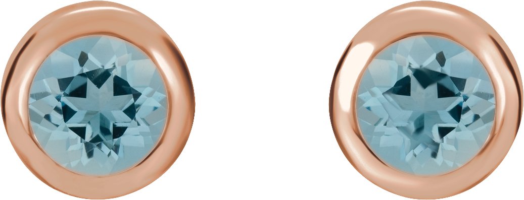 14K Rose 4 mm Round Genuine Aquamarine Birthstone Earrings