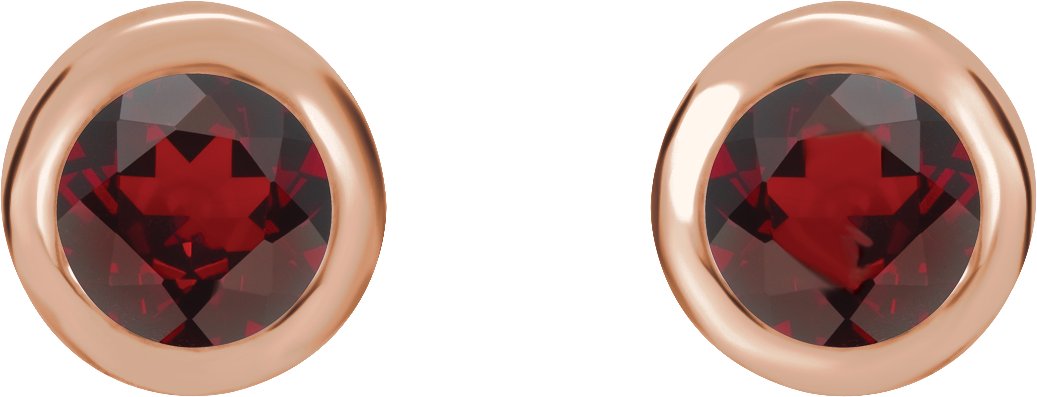 14K Rose 4 mm Round Genuine Mozambique Garnet Birthstone Earrings