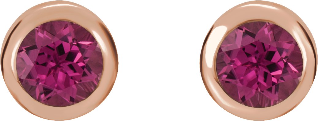 14K Rose 4 mm Round Genuine Pink Tourmaline Birthstone Earrings