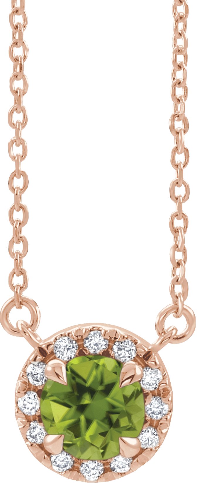 14K Rose 4 mm Round Peridot & .06 CTW Diamond 16 inch Necklace