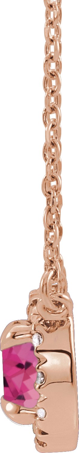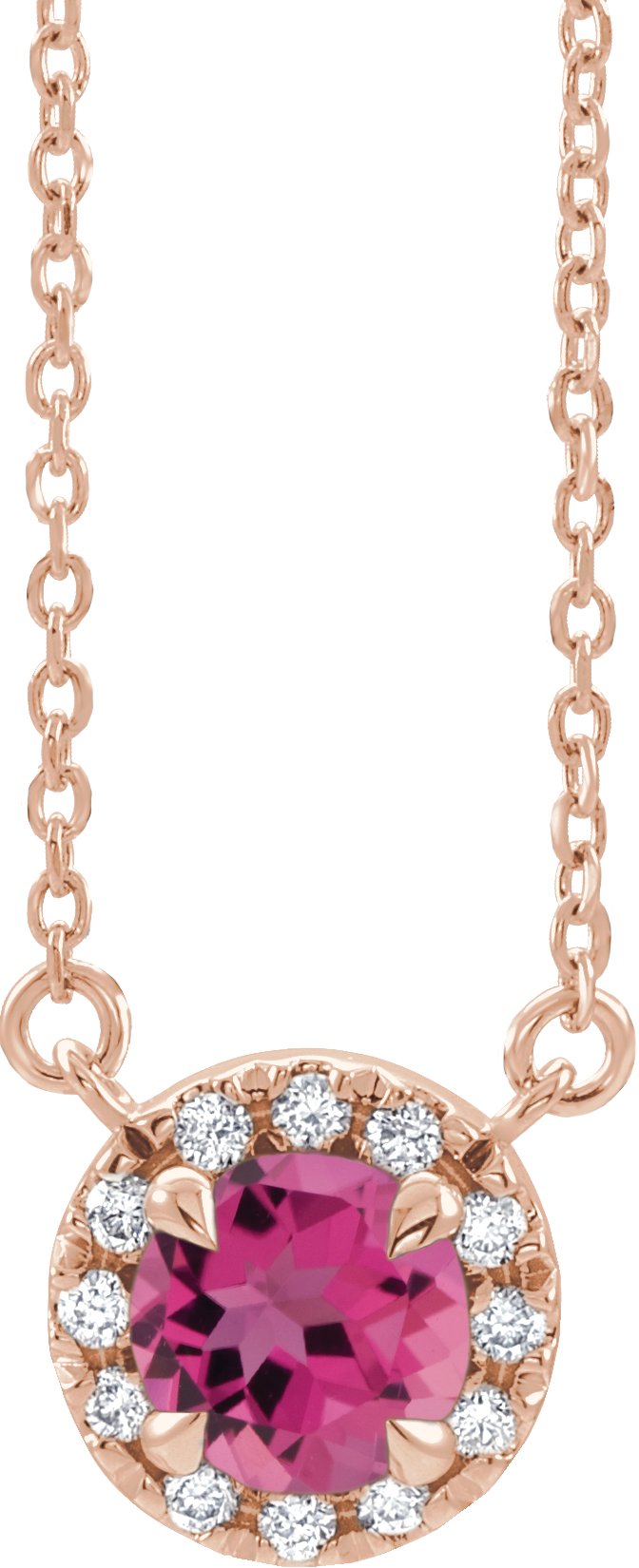 14K Rose 4 mm Round Pink Tourmaline & .06 CTW Diamond 16 inch Necklace