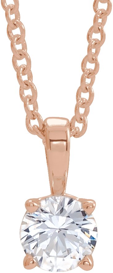 14K Rose 4 mm Round White Sapphire Birthstone 16 18 inch Necklace