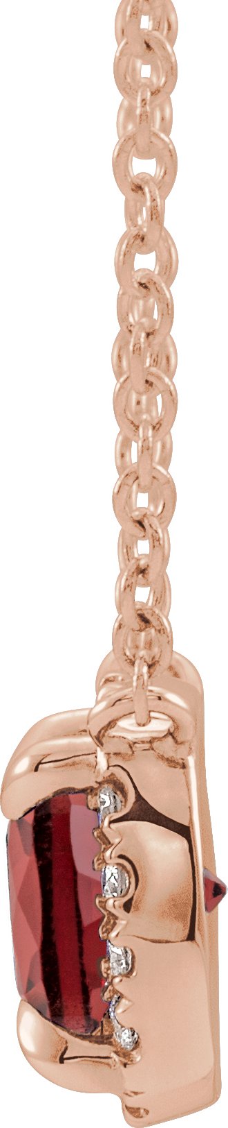 14K Rose 4x4 mm Square Mozambique Garnet & .05 CTW Diamond 18 inch Necklace
