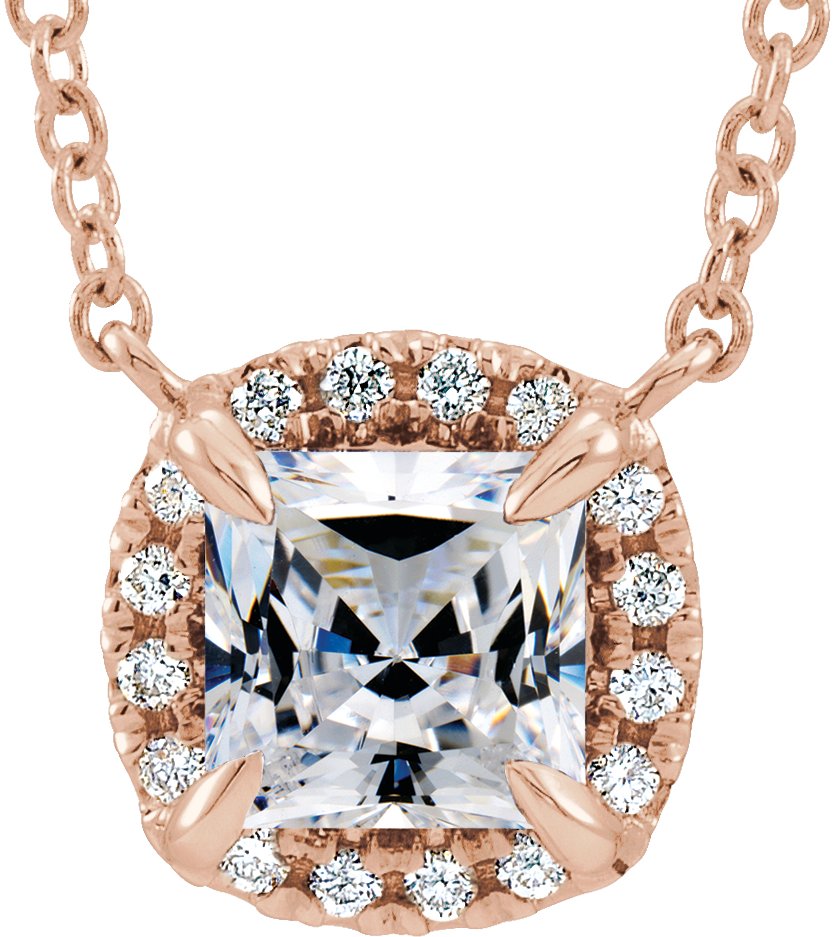 14K Rose 4x4 mm Square Sapphire & .05 CTW Diamond 16 inch Necklace