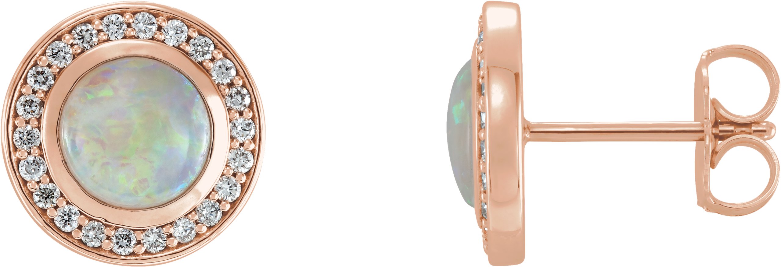 14K Rose 5 mm Opal and .17 CTW Diamond Halo Style Earrings