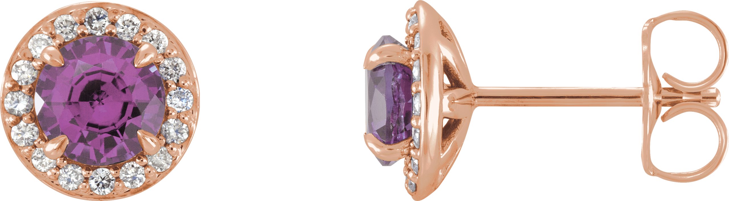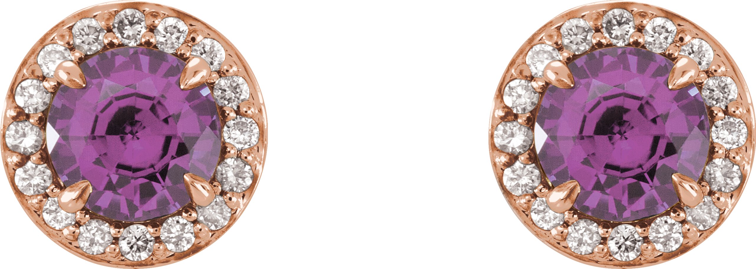 14K Rose 5 mm Round Amethyst & 1/8 CTW Diamond Earrings