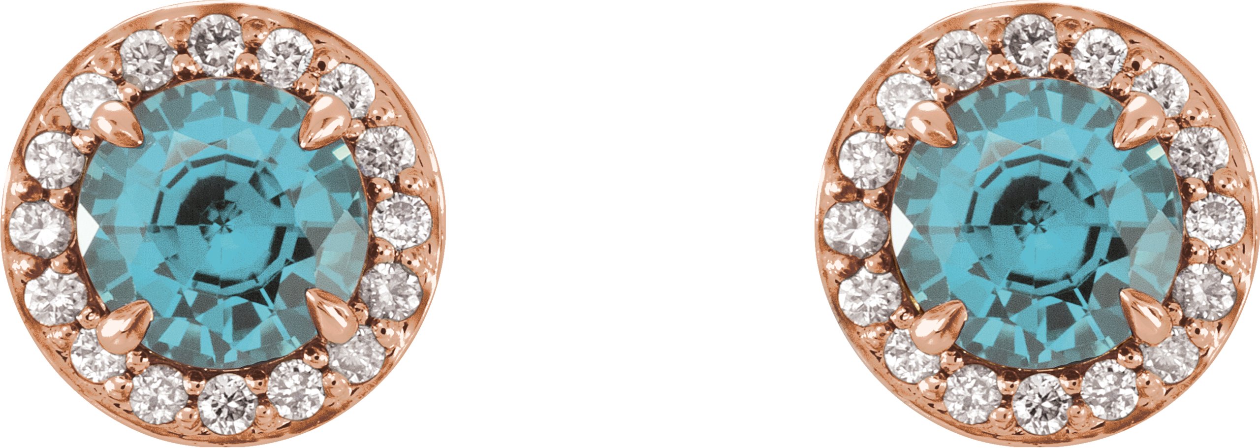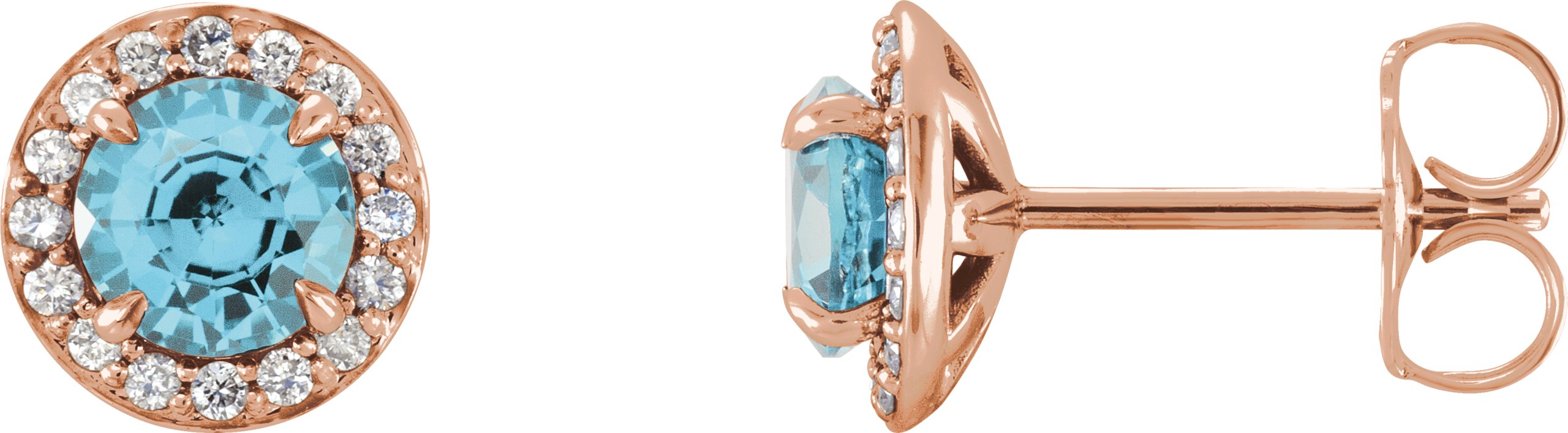 14K Rose 5 mm Round Aquamarine & 1/8 CTW Diamond Earrings