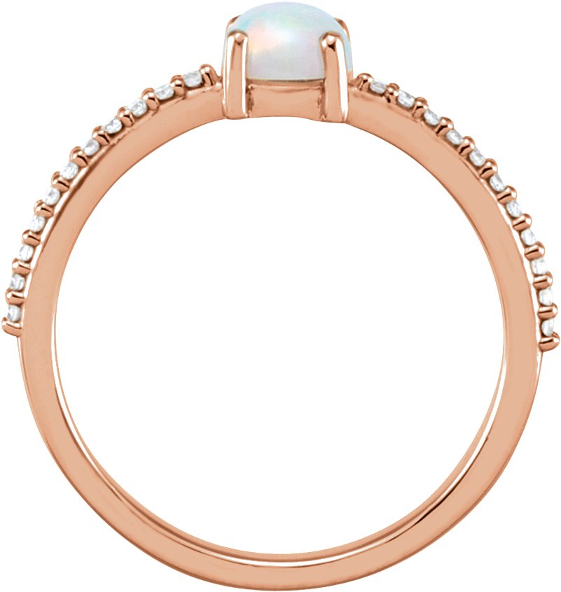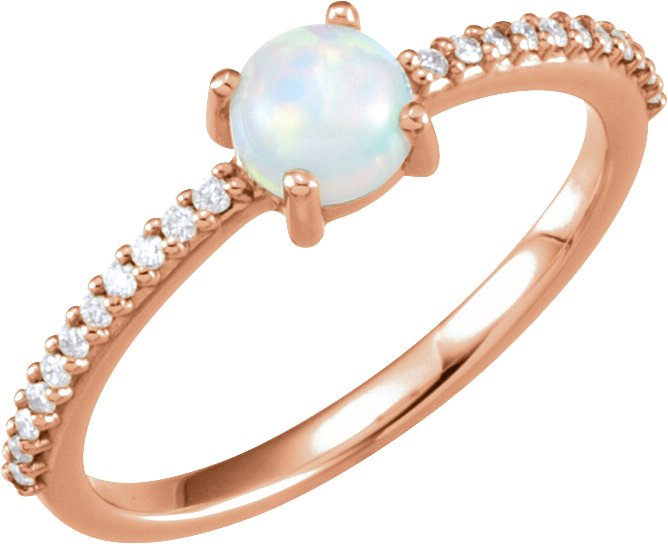 14K Rose 5 mm Round Cabochon Chatham Created Opal & 1/8 CTW Diamond Ring