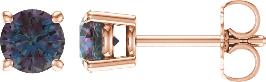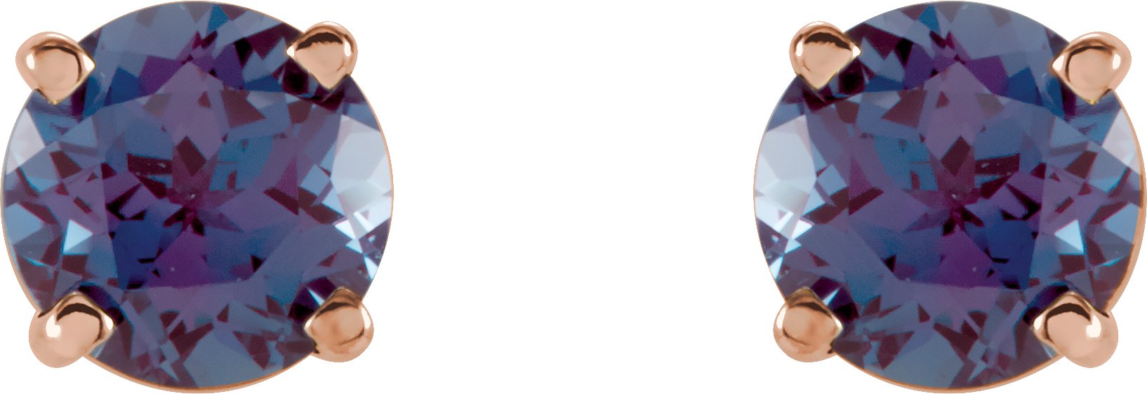 14K Rose 5 mm Round Chatham Created Alexandrite Earrings