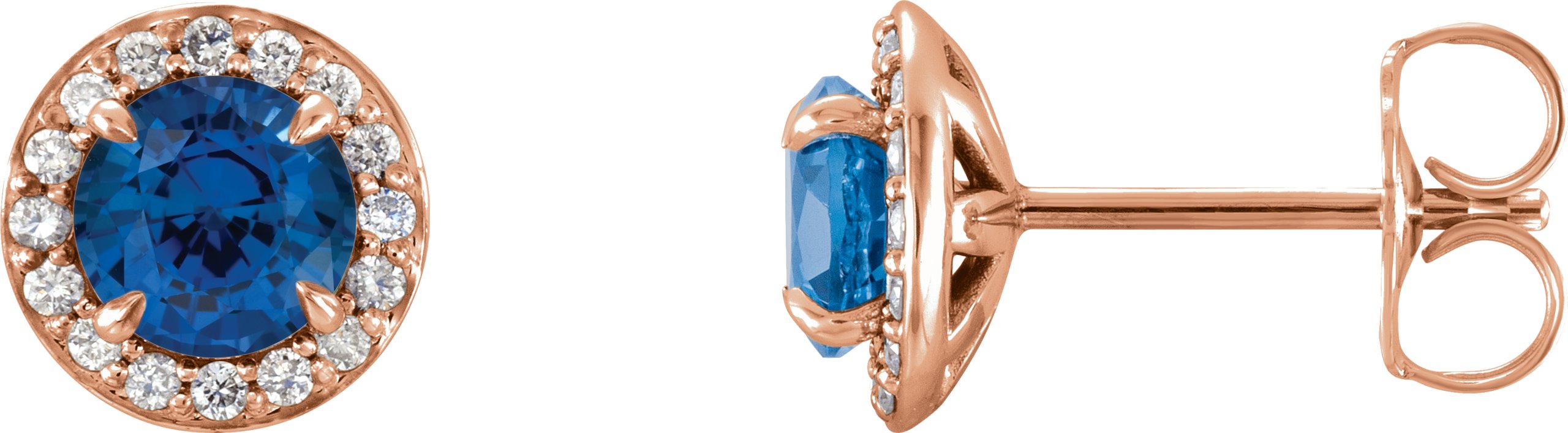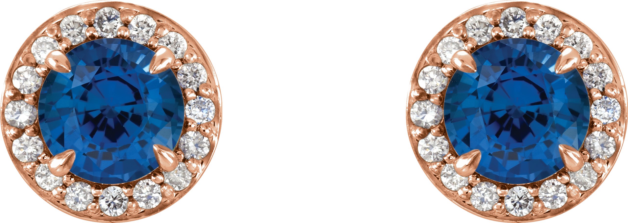 14K Rose 5 mm Round Chatham Lab Created Blue Sapphire & 1/8 CTW Diamond Earrings