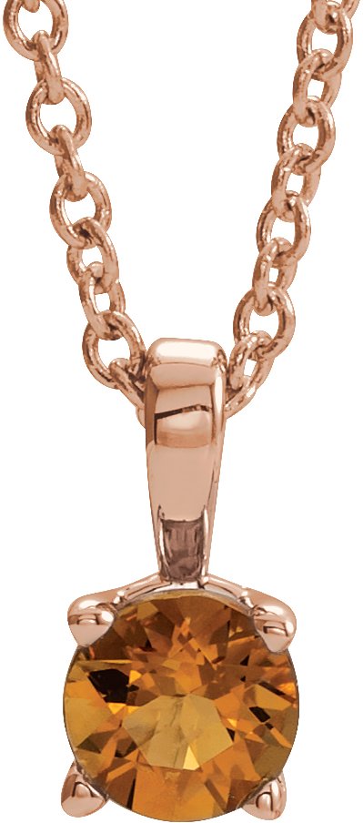 14K Rose 5 mm Round Citrine Birthstone 16 18 inch Necklace