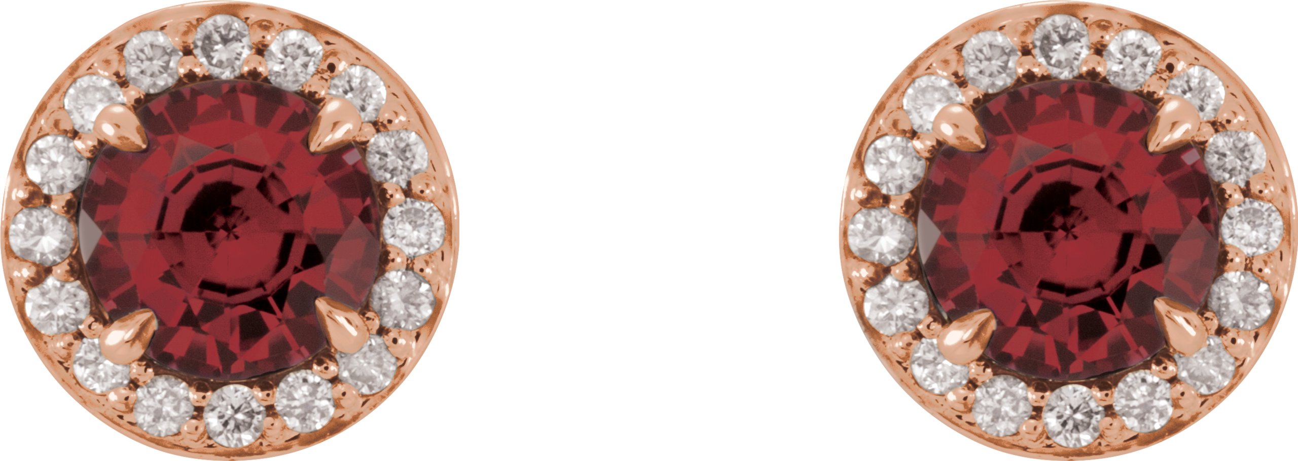 14K Rose 5 mm Round Mozambique Garnet & 1/8 CTW Diamond Earrings
