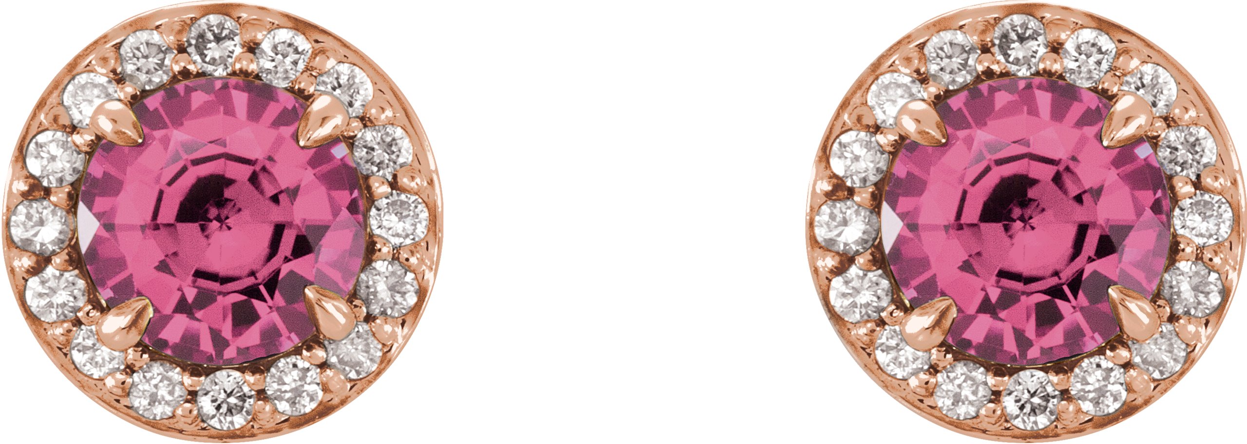 14K Rose 5 mm Round Pink Tourmaline & 1/8 CTW Diamond Earrings