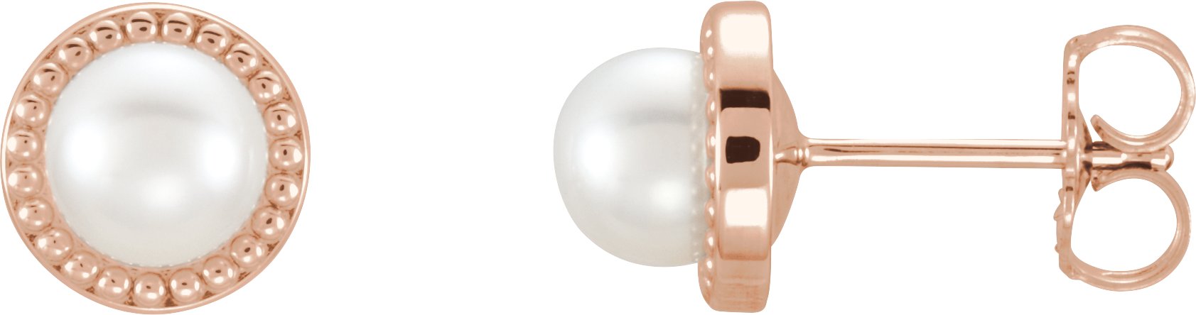 14K Rose 5.5 6 mm Freshwater Cultured Pearl Earrings
