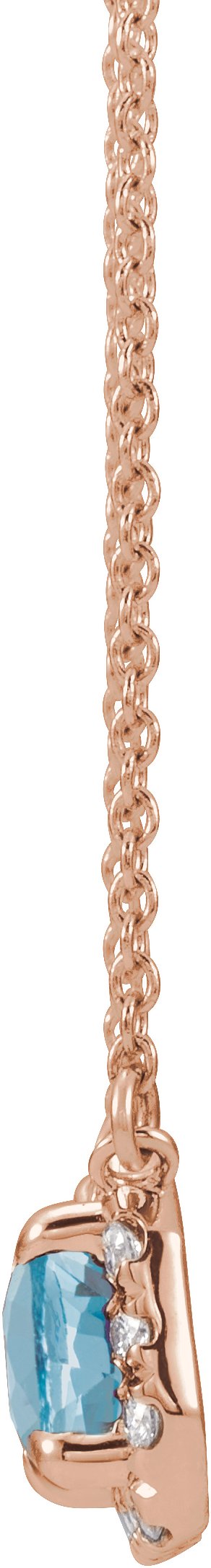14K Rose 5x3 mm Emerald Aquamarine & 1/8 CTW Diamond 18 inch Necklace
