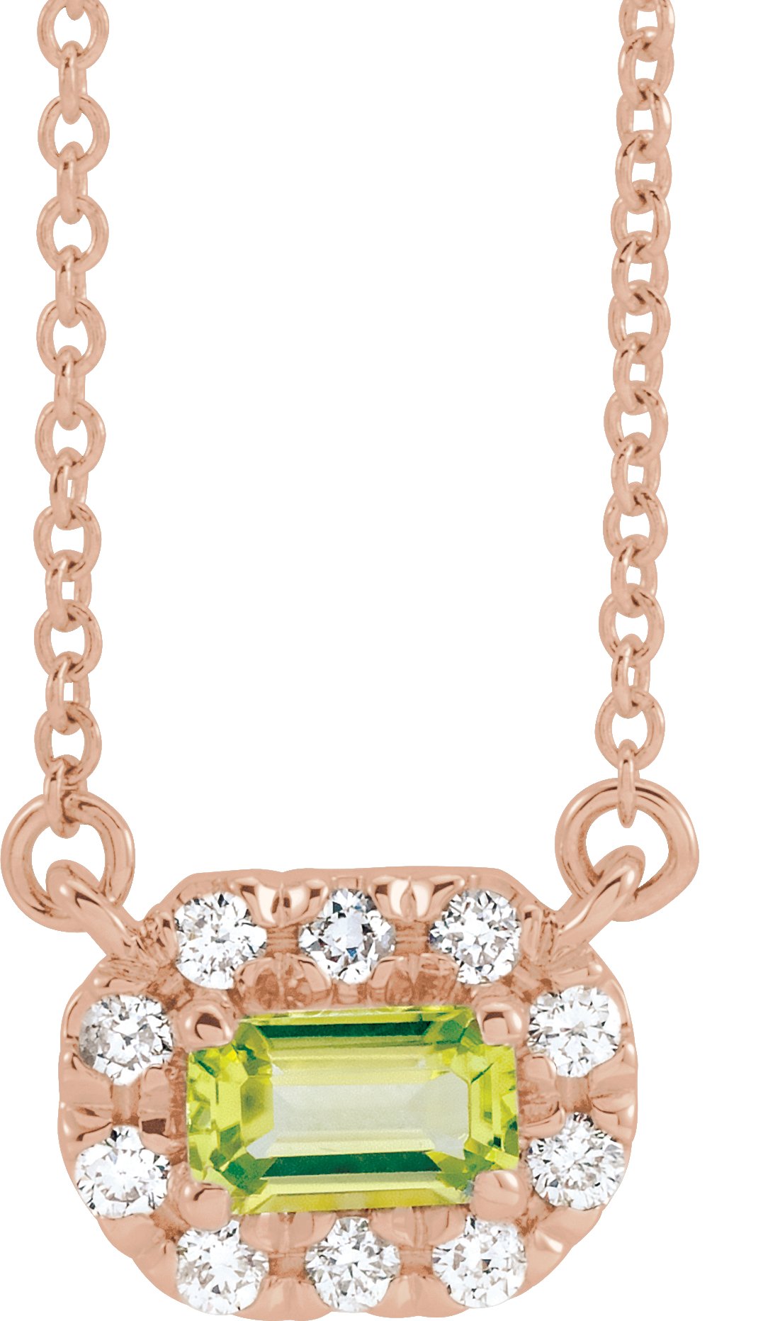 14K Rose 5x3 mm Emerald Peridot & 1/8 CTW Diamond 18 inch Necklace